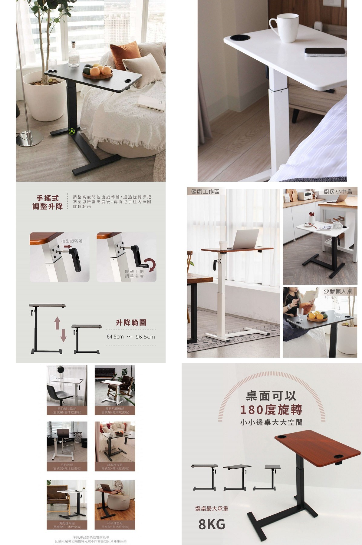 桌面可180度旋轉隱藏滾輪手搖升降床邊桌(六色新款))#人氣商品