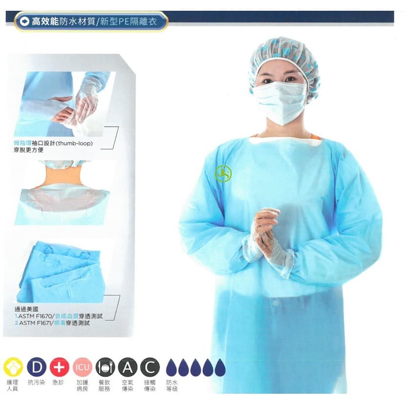 拋棄式新型PE隔離衣(新款)#人氣商品