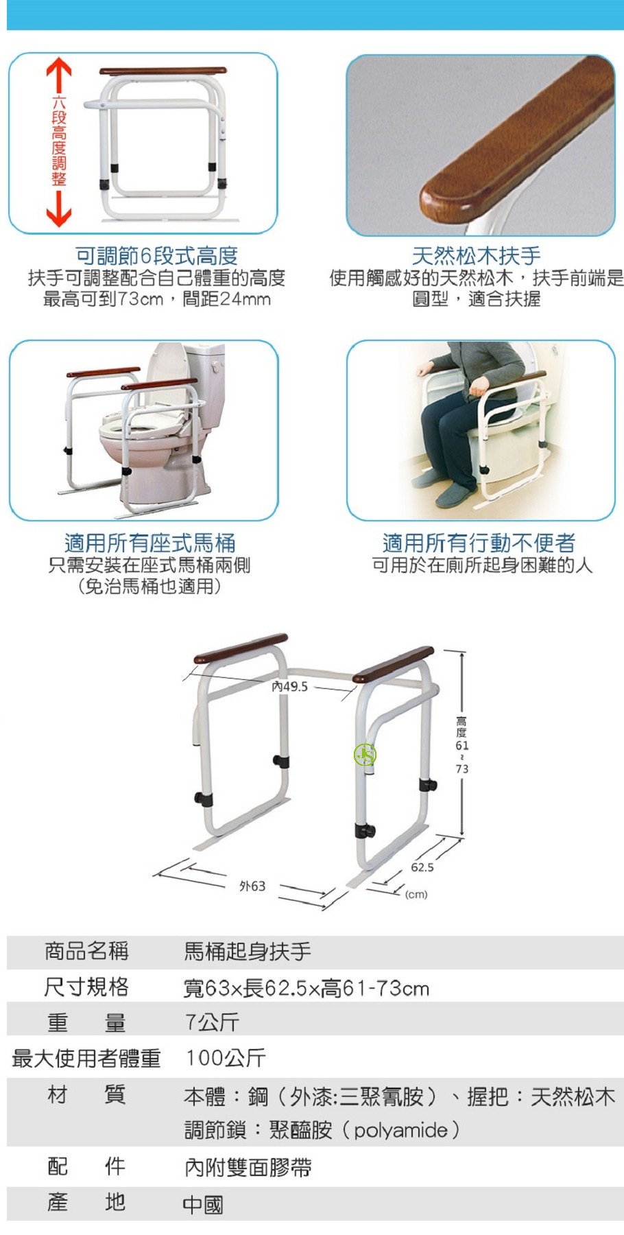 馬桶起身輔助扶手(免治馬桶適用款)