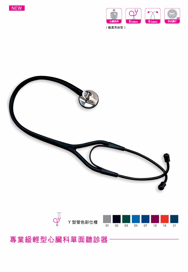 專業級輕型心臟科單面聽診器PS748PF 酷黑耳掛型