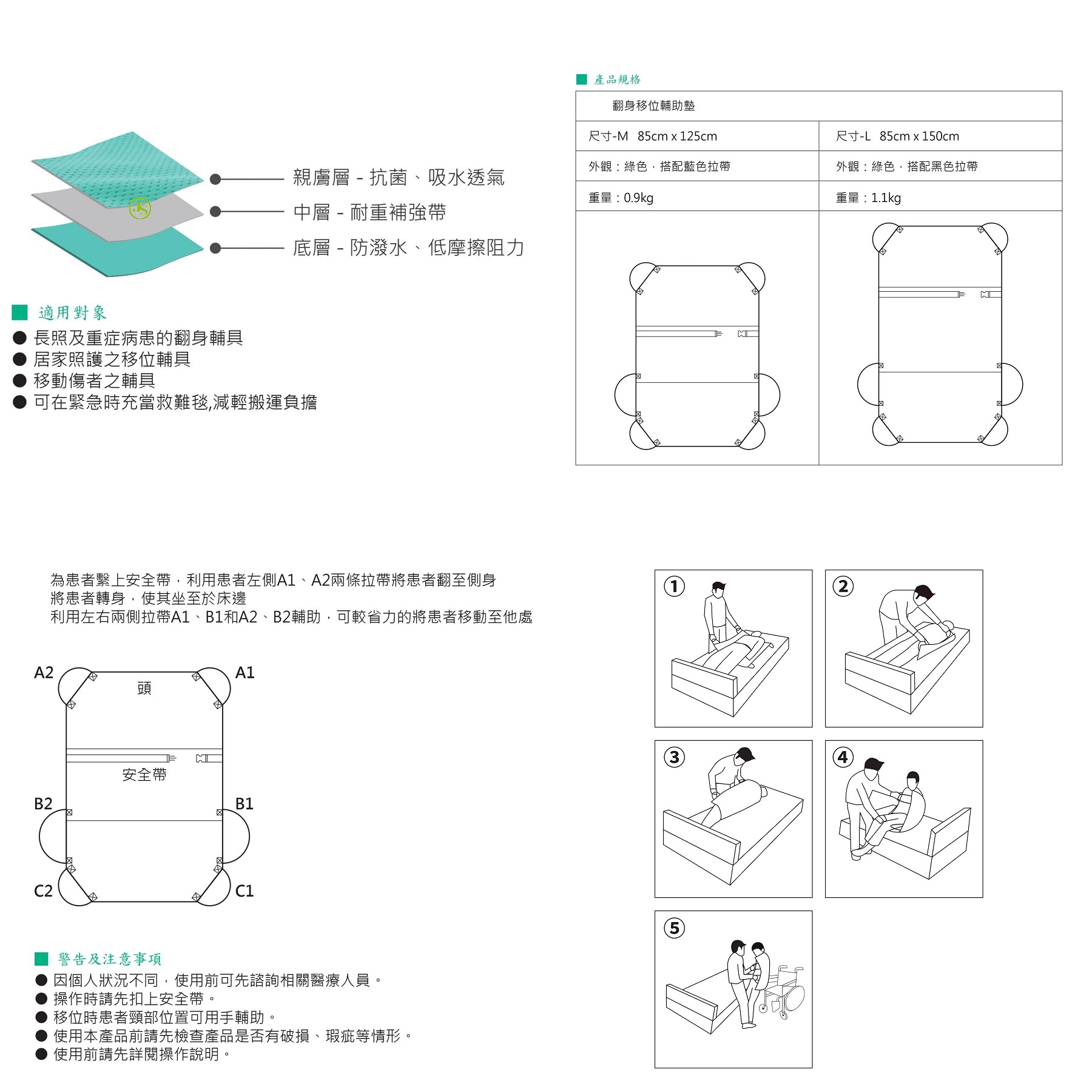 翻身移位輔助墊(六握把新款)(人力移位吊帶)#人氣商品