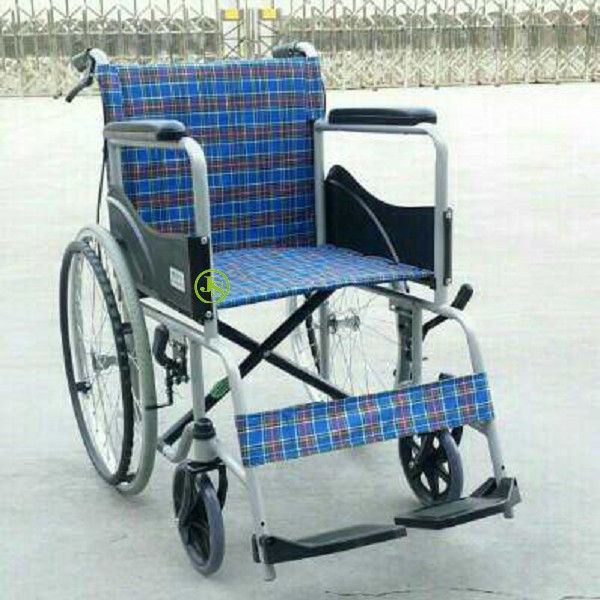 鐵製一般型輪椅(藍格紋)(醫院專用款式/捐贈專用款式)