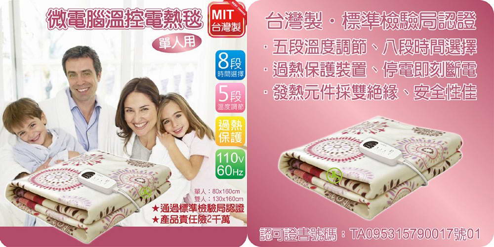 微電腦溫控電熱毯JB-Z2(雙人型)130x160