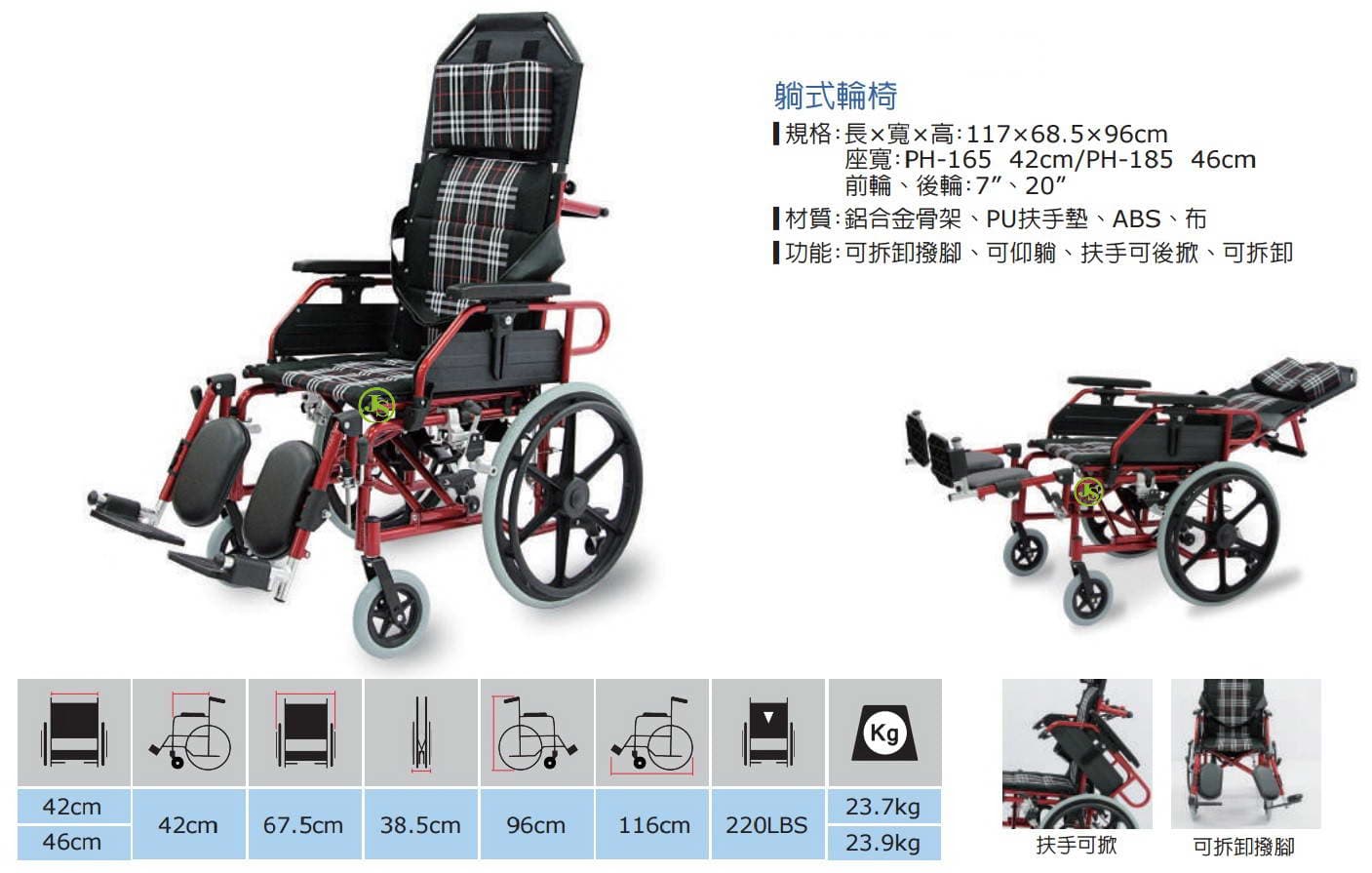 85躺式一般型輪椅(輪椅B款-附加功能A+B)