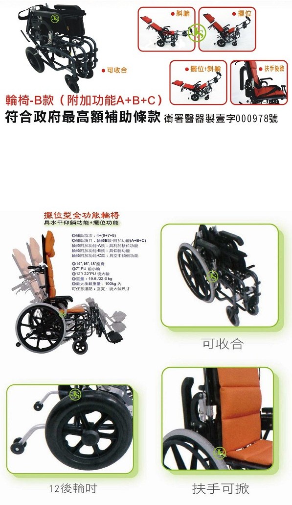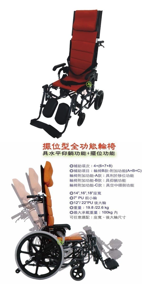 ST後躺+空中傾倒二合一全功能型輪椅(輪椅B款-附加功能A+B+C)