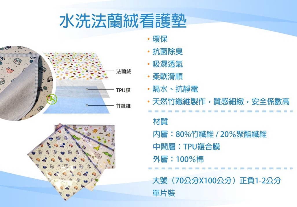 水洗法藍絨看護墊防水中單(三層中單/雙面冬夏兩用/中間層防水層)
