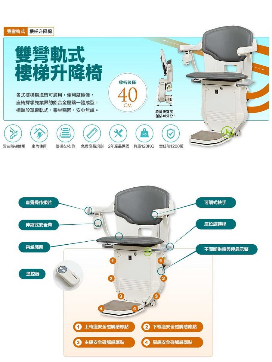 雙彎軌式樓梯升降椅