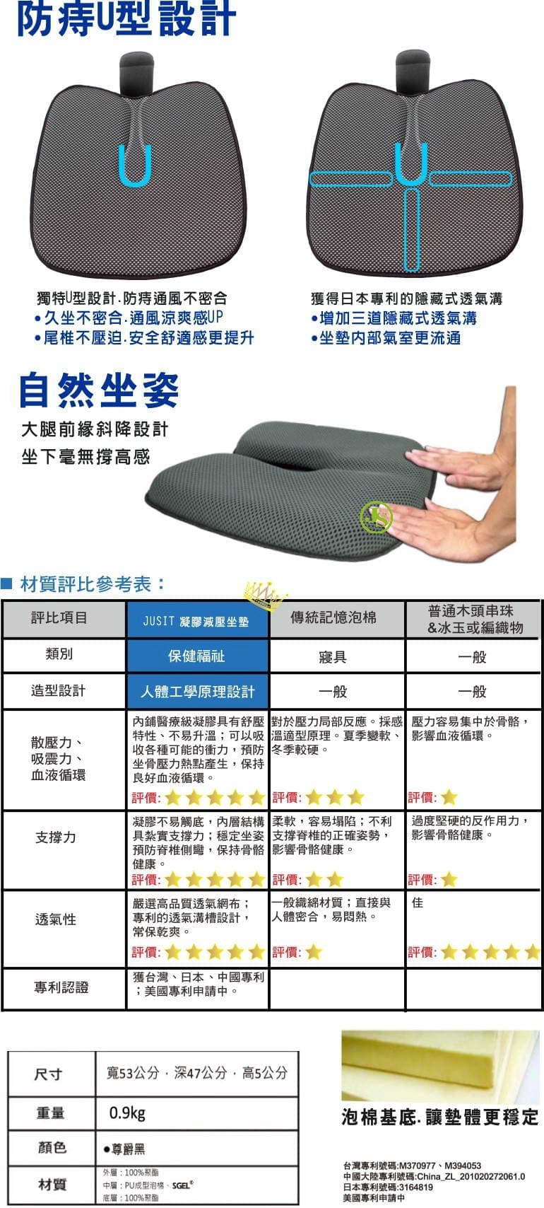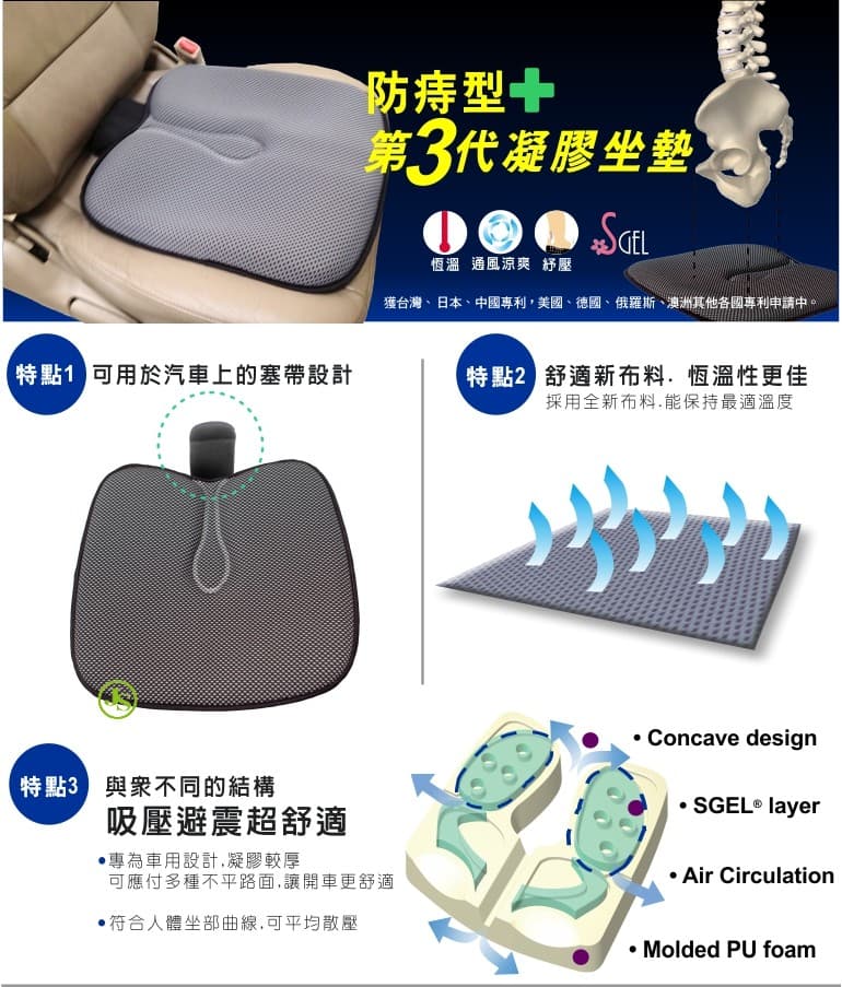專利車用凝膠坐墊3G-1
