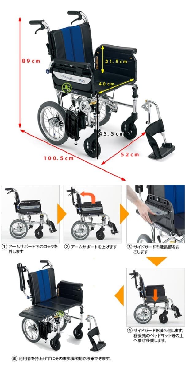 日本MIKI移位型輪椅介護型(拆手拆腳/移位板功能)(輪椅B款-附加功能A)