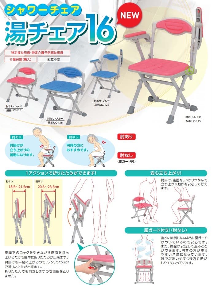 - 可折疊站立、輕盈小巧的洗澡坐椅