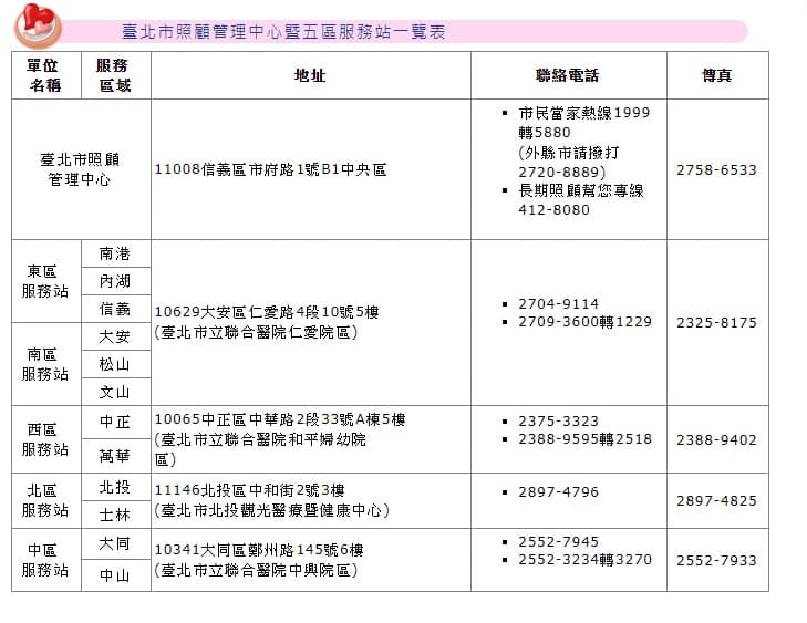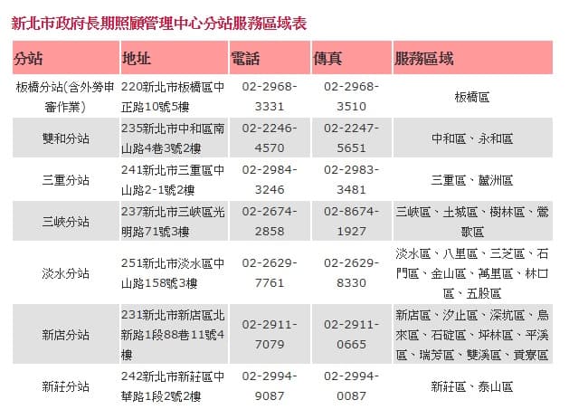 長照管理中心台北市服務據點&長照管理中心新北市服務據點