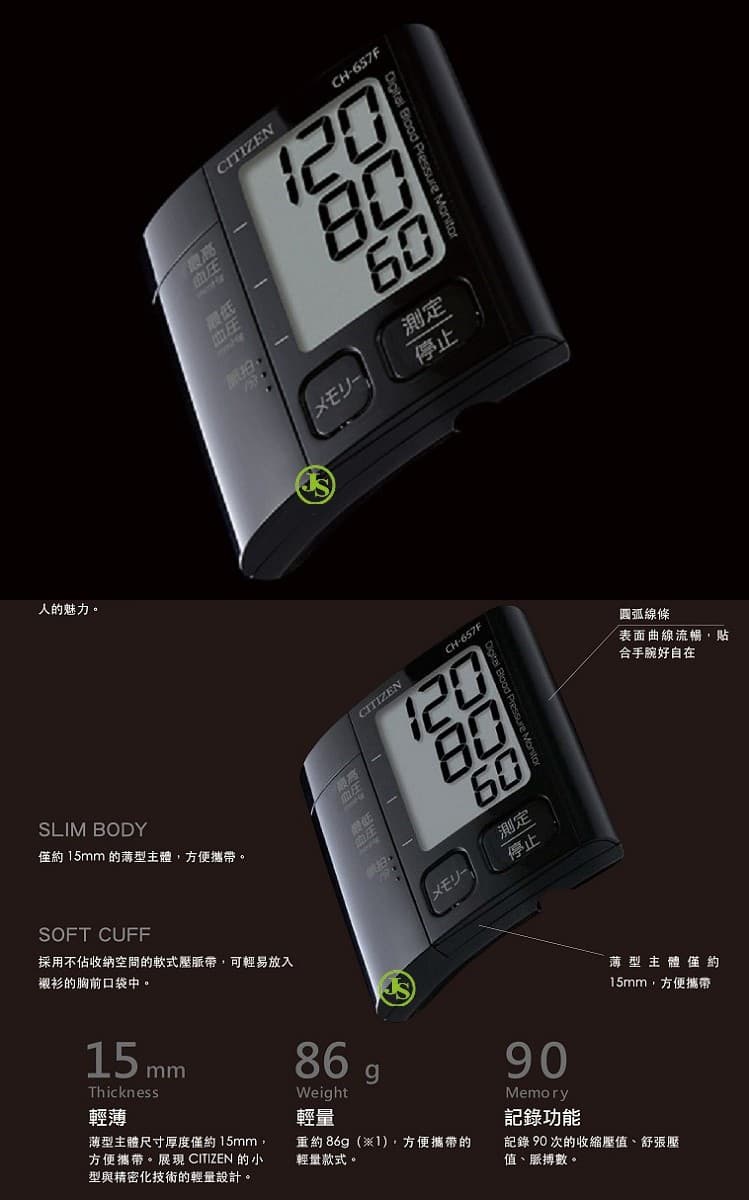 日本CITIZEN星辰手腕式電子血壓計CH-657F(勁黑系列全新上市)