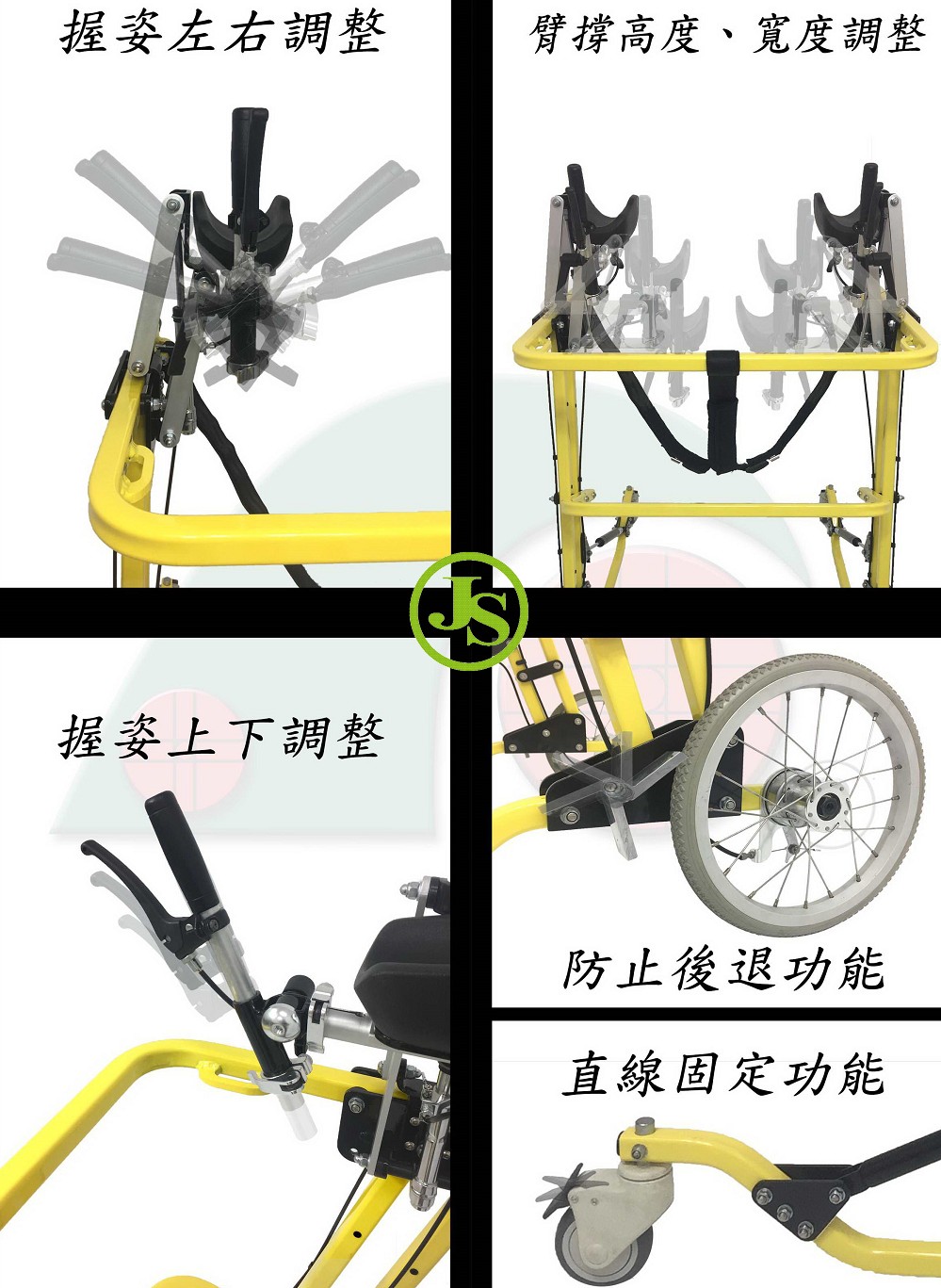 - 後輪可調整成自主轉向或固定直線前進
