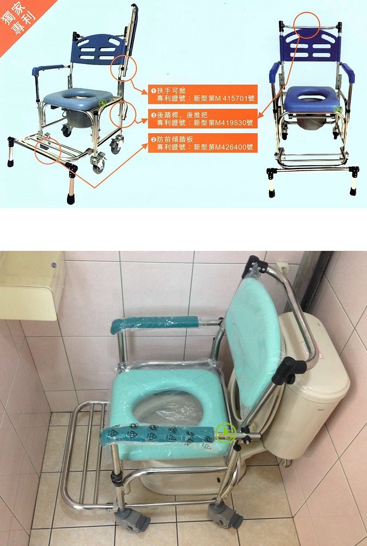 鋁合金附輪扶手可掀移位型便器椅便盆椅(馬桶進出型)(新款)