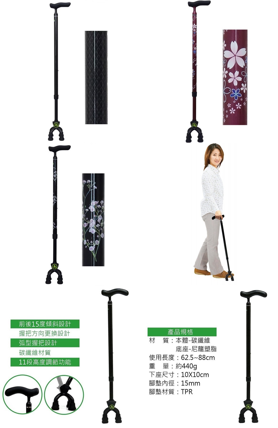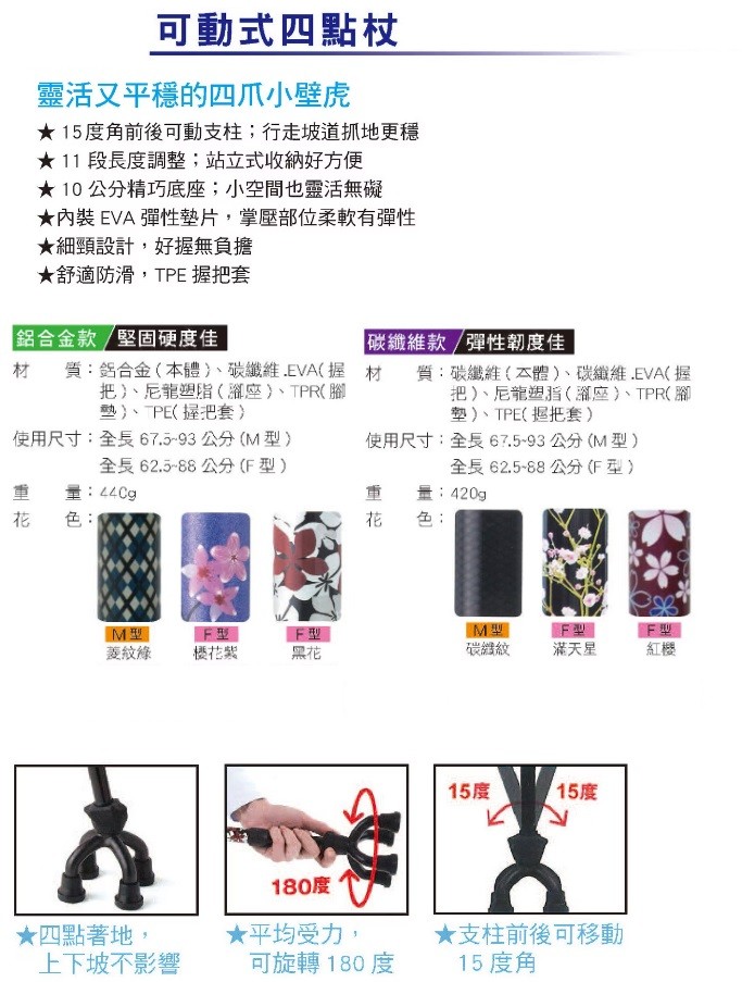 日本全碳纖維角度可動型(15度)四點手杖四腳拐(新款)#人氣商品