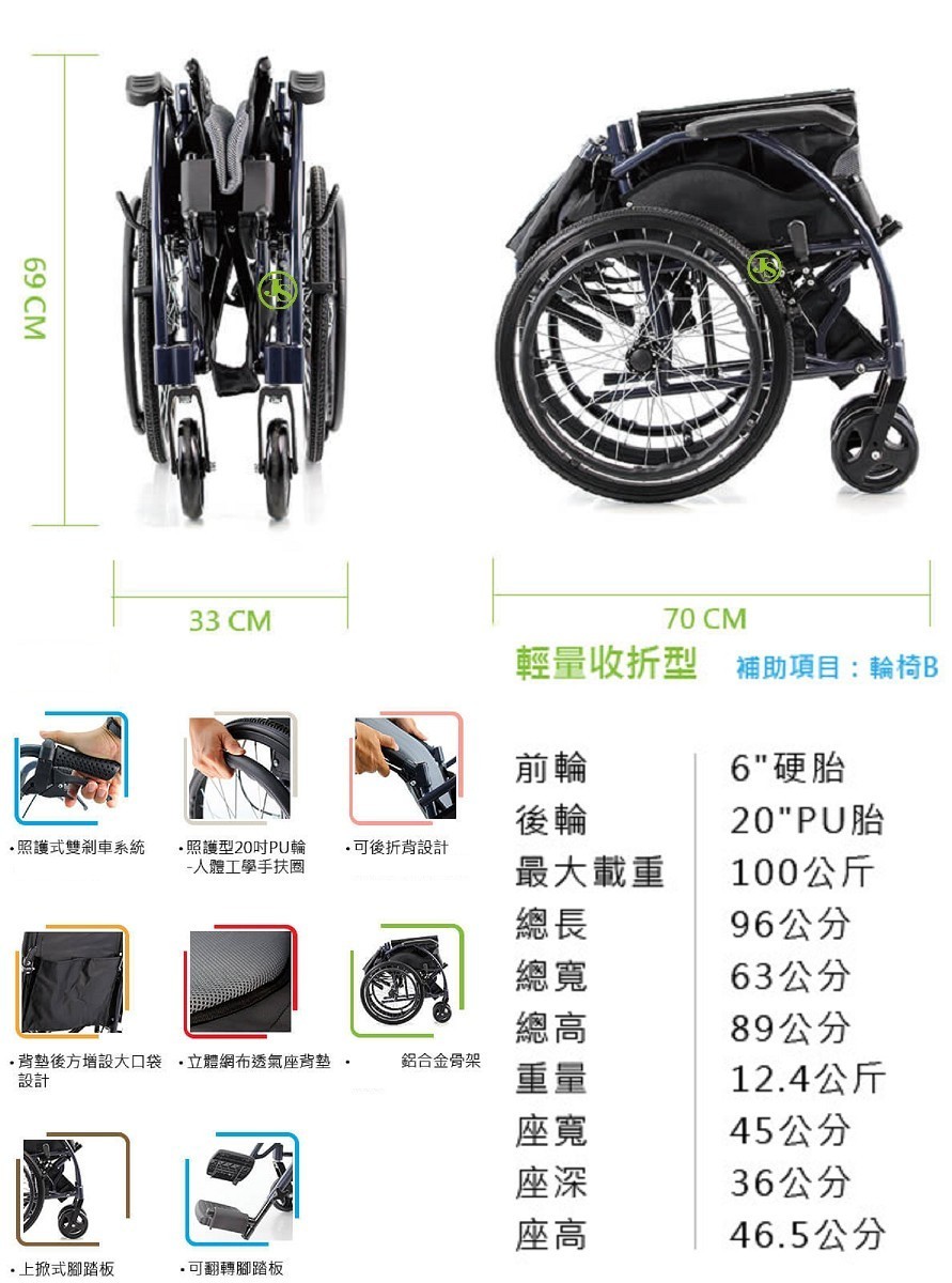 輕巧型上掀腳式輪椅(新款)#人氣商品