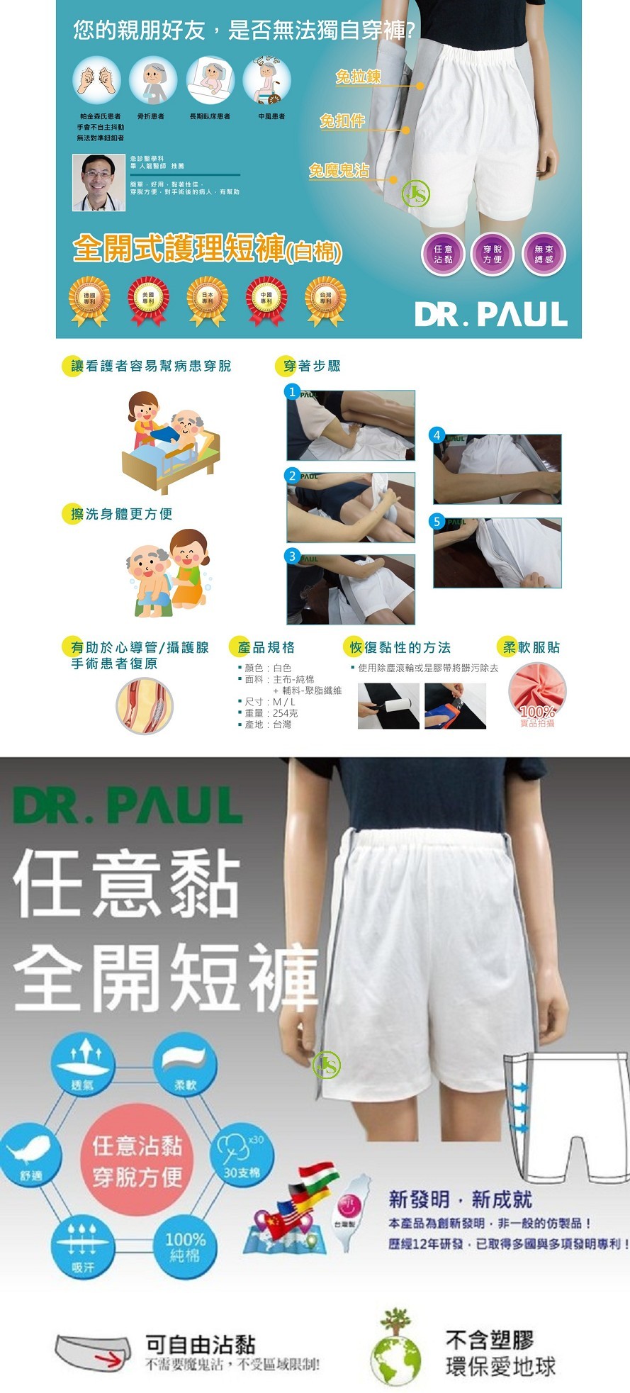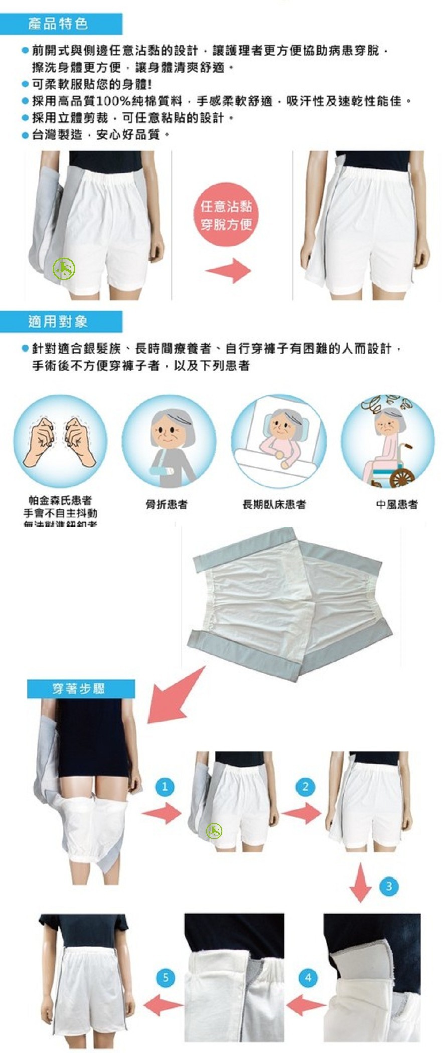 易穿脫創新黏合技術護理全開短褲-棉白(免拉鍊/免鈕扣/免魔鬼沾)(新款)#人氣商品