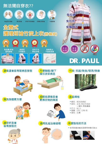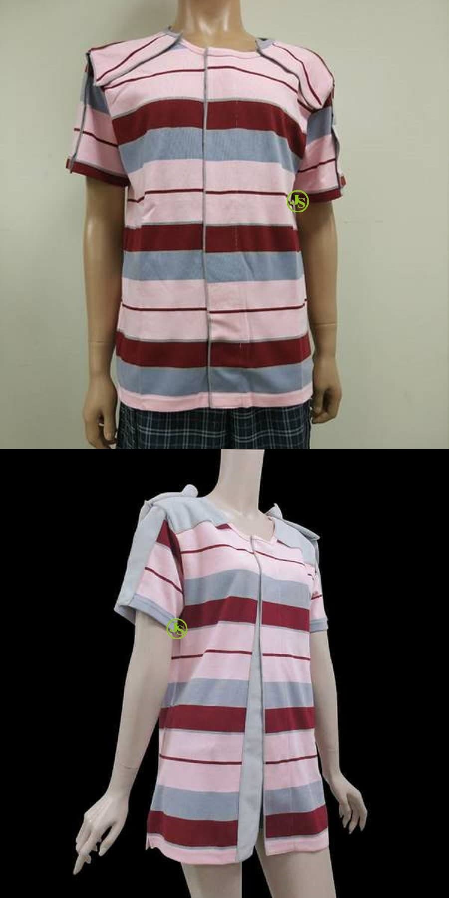 易穿脫創新黏合技術護理全開短袖-竹炭粉條紋(免拉鍊/免鈕扣/免魔鬼沾)(新款)#人氣商品