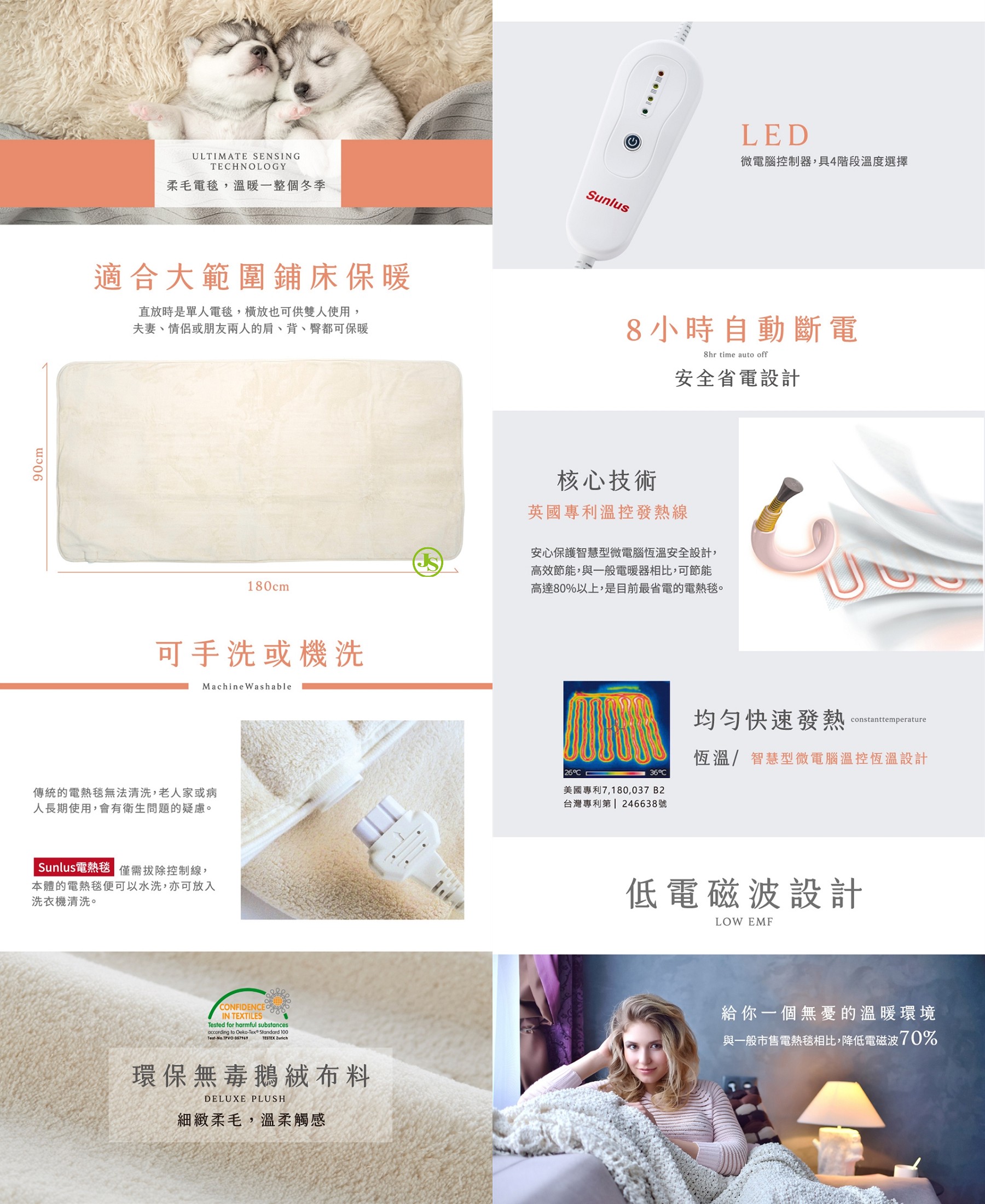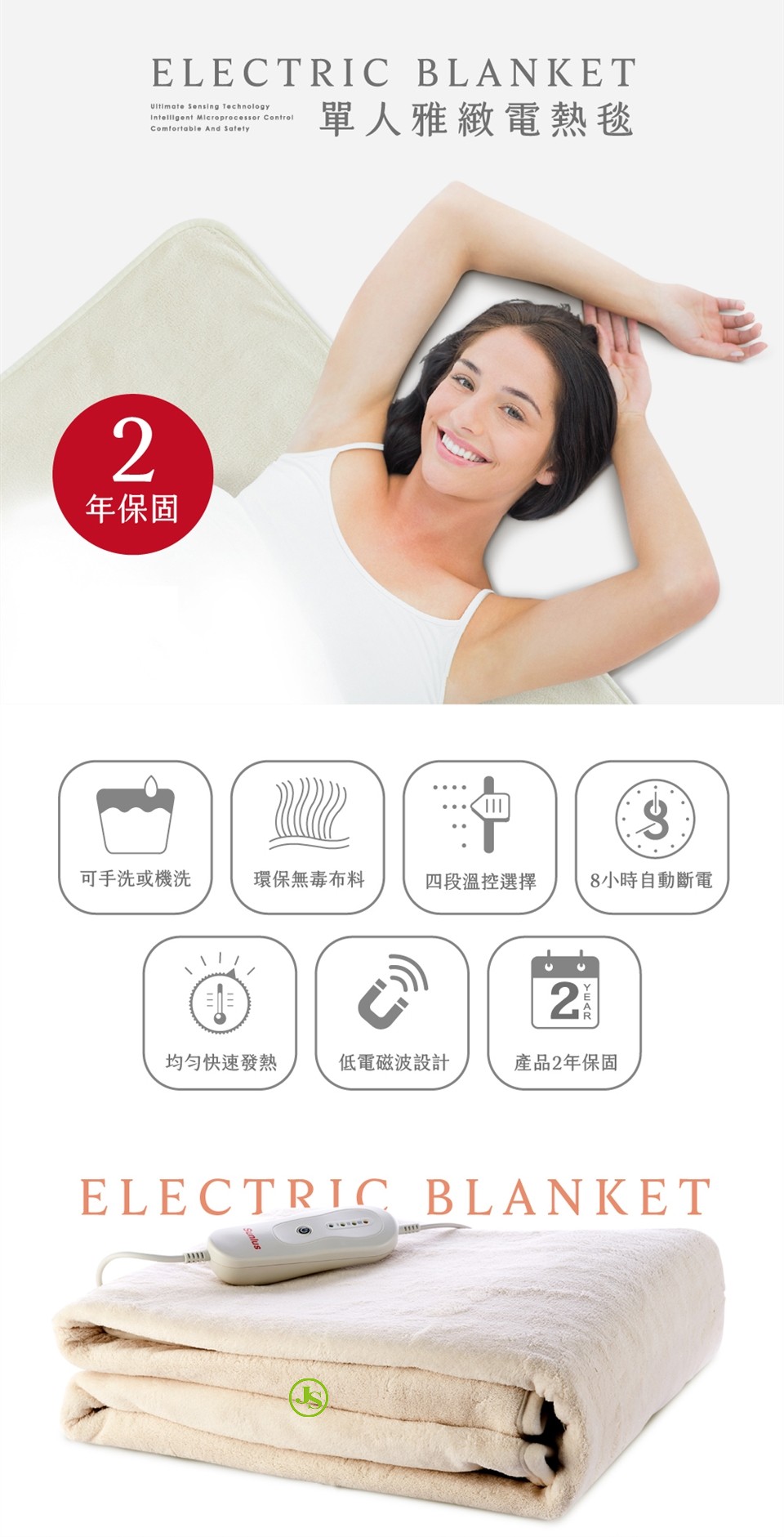 電熱毯本體可水洗、機洗