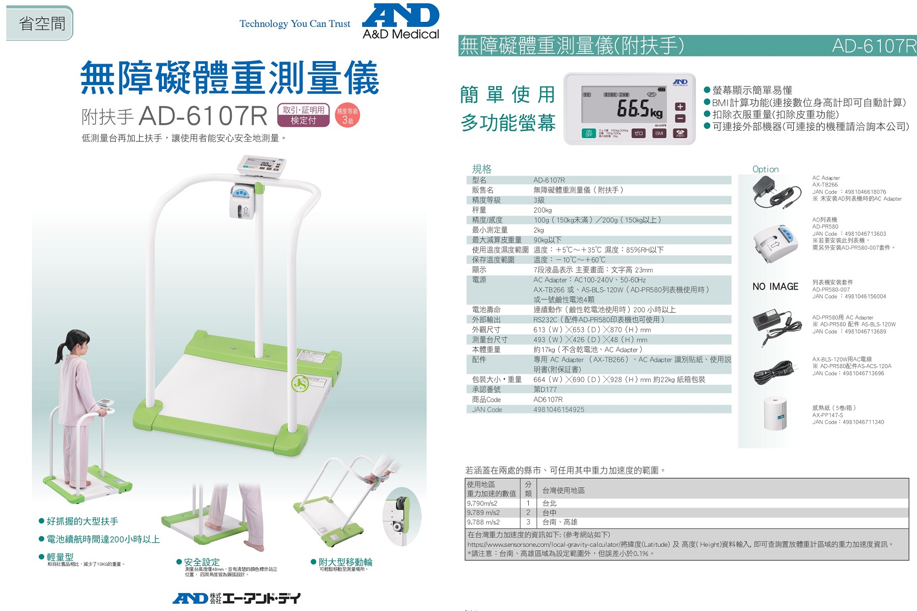 日本製AND愛安德無障礙體重測量儀(扶手型體重秤)AD-6107R(新款)