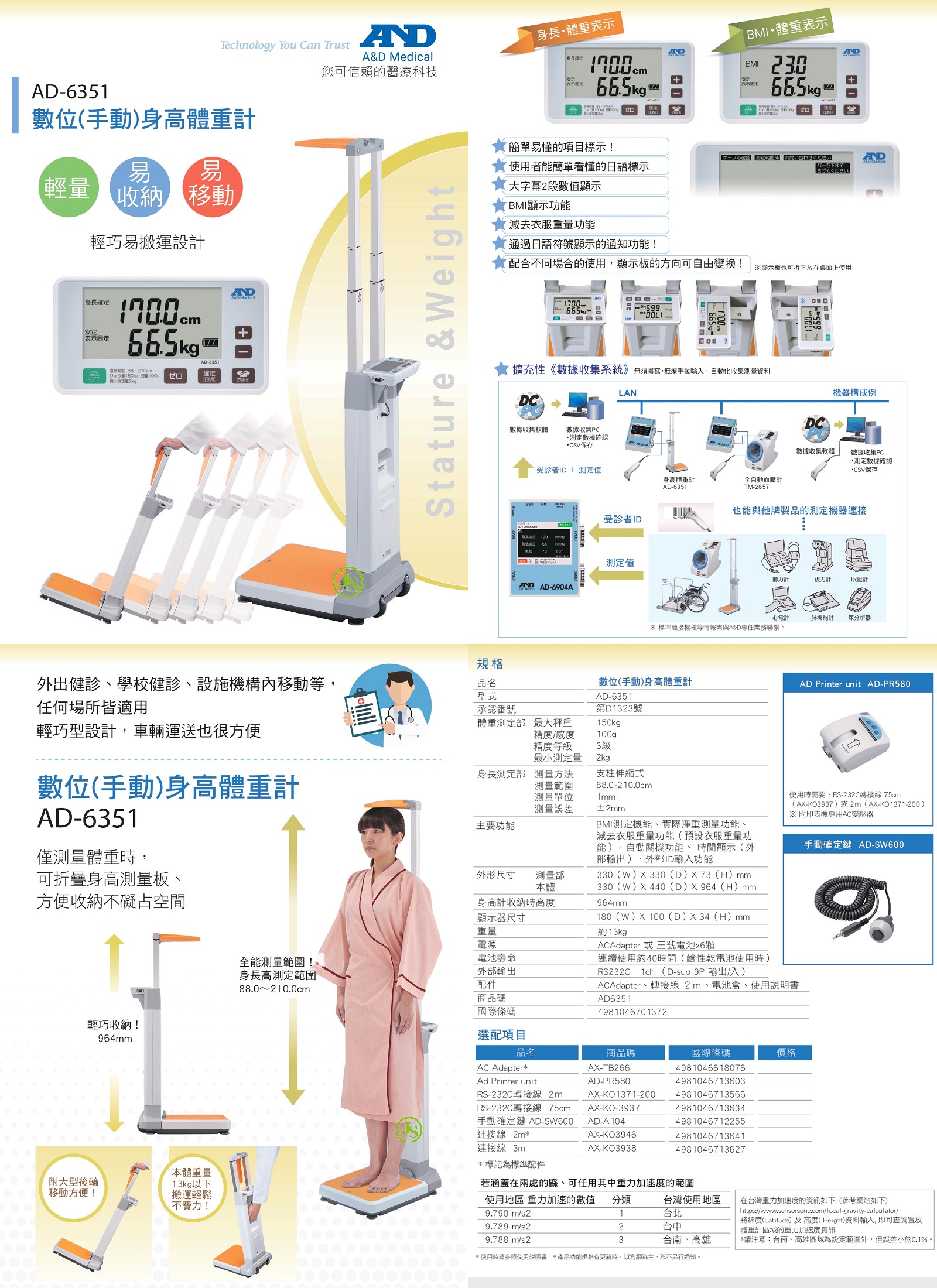 日本製AND愛安德電子式數位(手動)身高體重計AD-6351(新款)