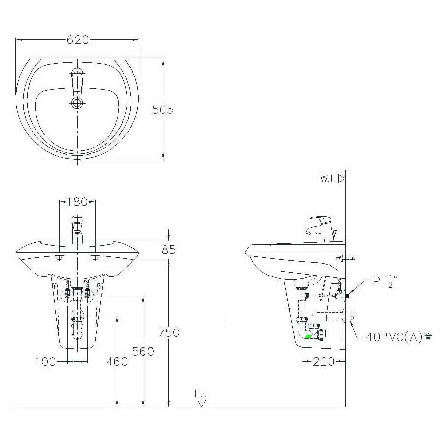 - 奈米面盆:W 620 x D 505 x H 230 mm