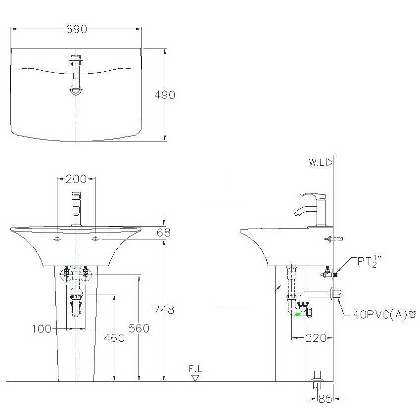 - 奈米面盆:W 690 x H 490 x H 210 mm