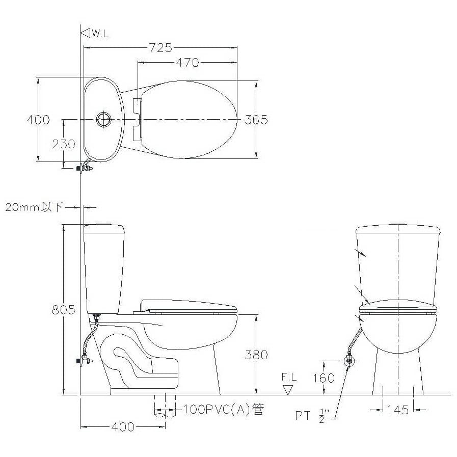 - 奈米馬桶:W 365 x D 700 x H 385 mm
