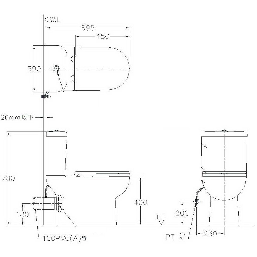- 奈米馬桶:W 370 x D 695 x H 415 mm