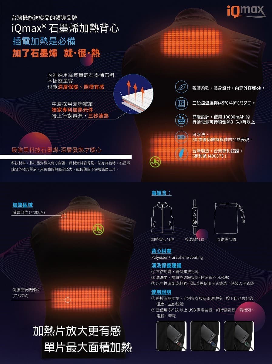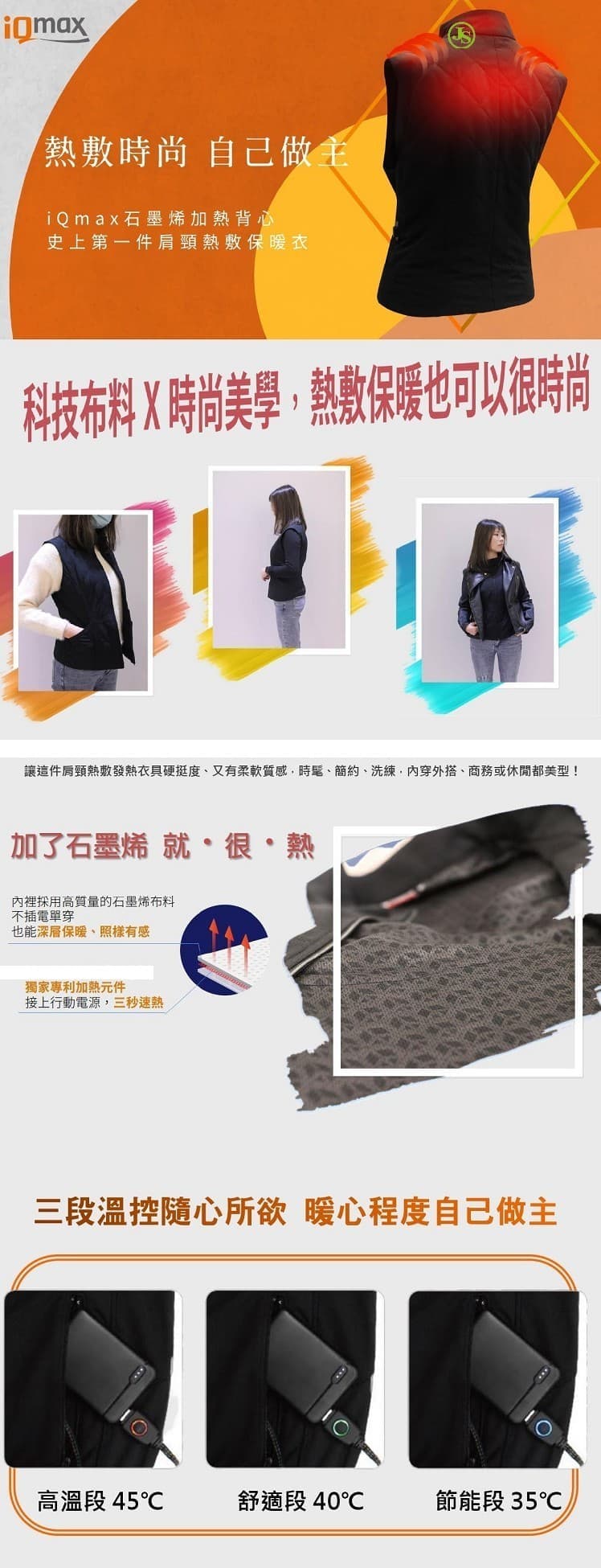 內裡採用高質量的石墨烯布料,不插電單穿,也能有感升溫7 °C。