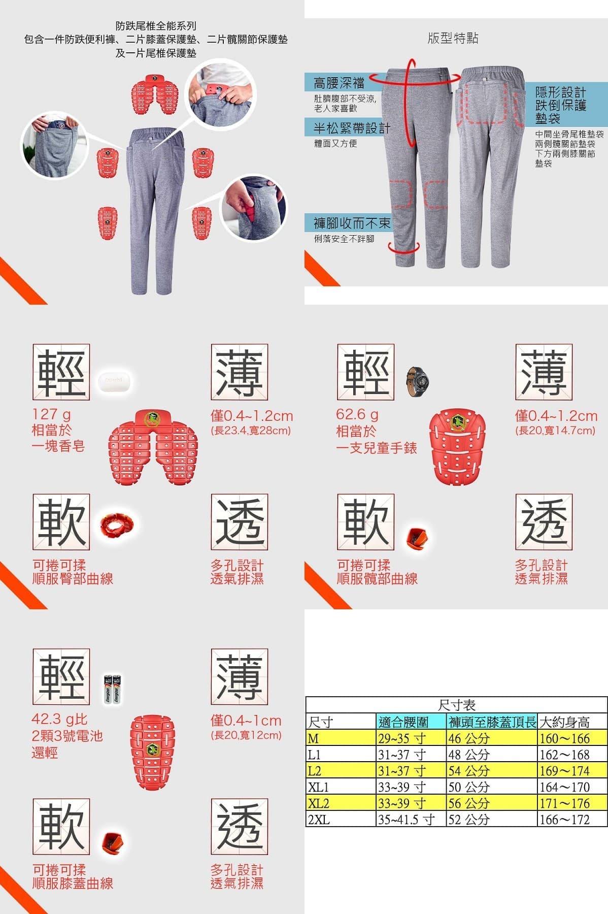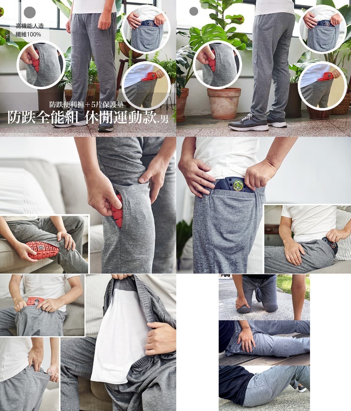 銀髮防護跌摔撞運動褲(男)(褲+5片保護墊)