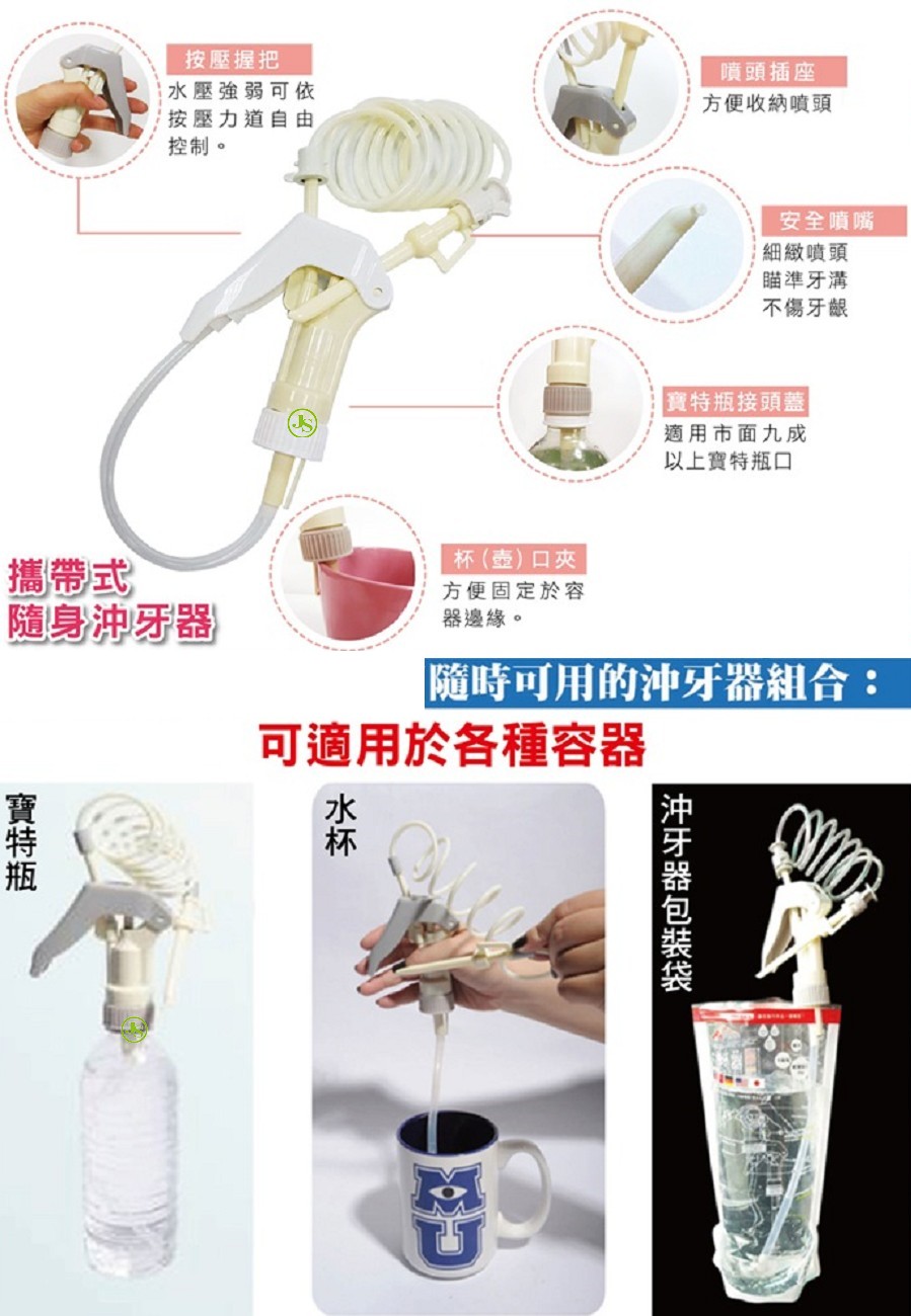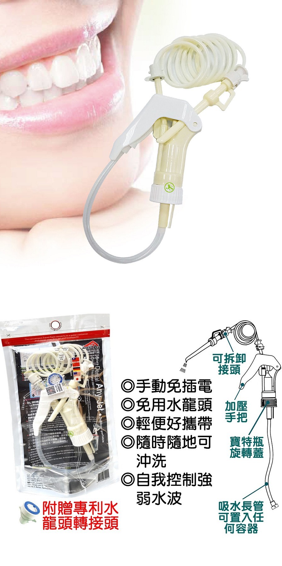 - 不需插電、人體工學設計,專利結構體,無段式水壓