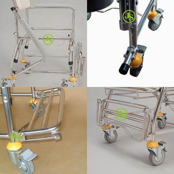 CS台灣製不鏽鋼四輪扶手活動便利型便器椅便盆椅(四輪防水黃色弧形蓋專利設計/醫療院所機構指定款式)#人氣商品